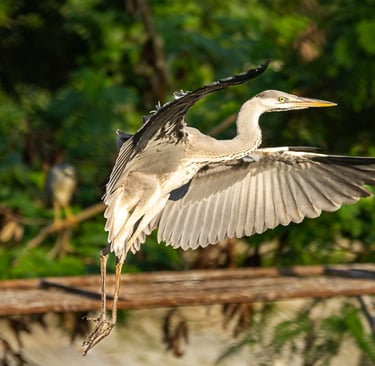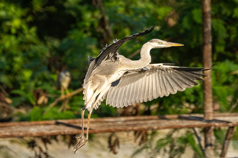The Grey Heron Birds are typically found in wetlands across Europe, Asia, and Africa. They are known for their grey plumage, long legs, and long, pointed beak