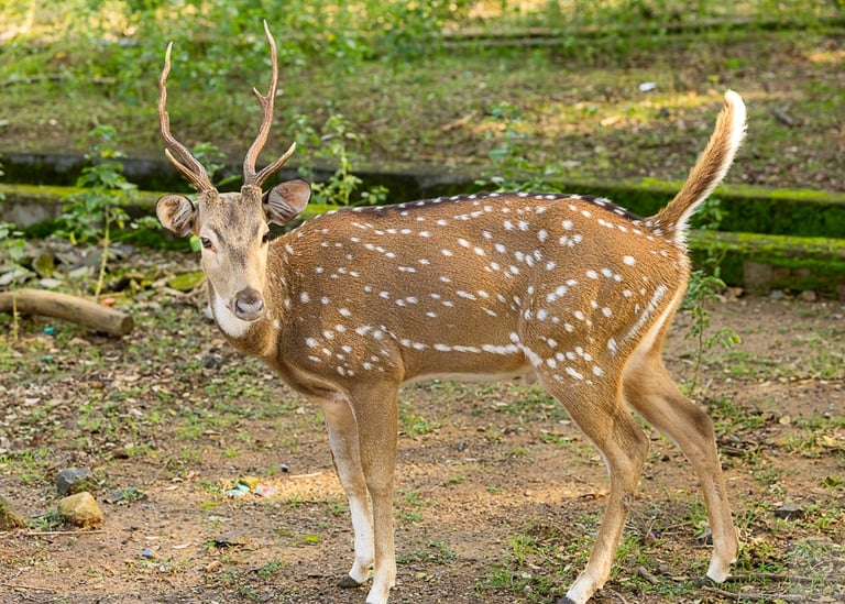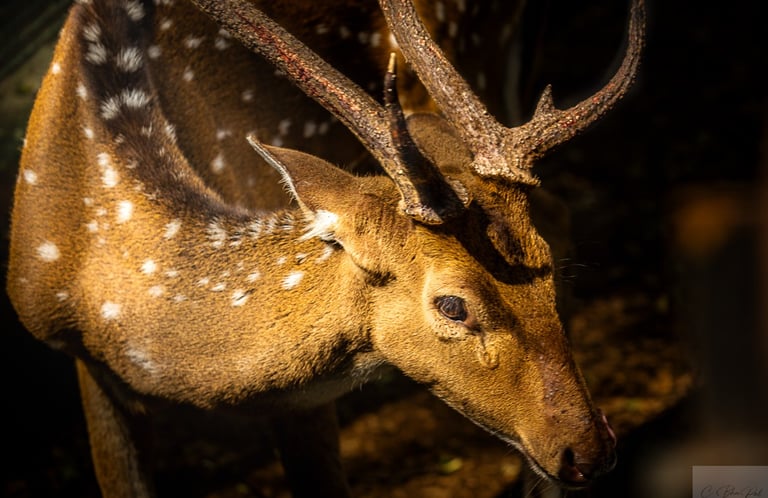 Capturing a spotted deer in the Forest, the Sun is casting a glowing light on it.